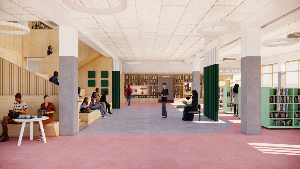 We are thrilled to be collaborating once more with Lewisham Council on the renovation of the Lewisham Library. This scheme will involve a comprehensive overhaul, transforming the library into a vibrant hub with new open areas that include a cafĂ©, performance venues, conference rooms, and enhanced study spaces at this “flagship” location.